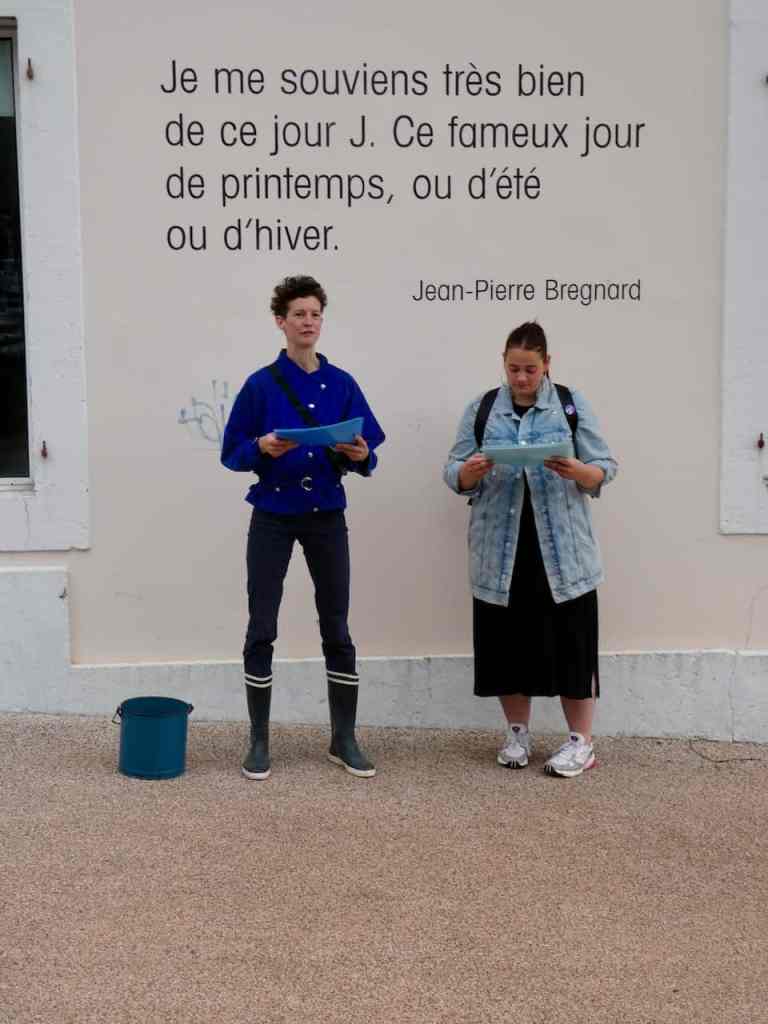 Devant chacune des phrases, les comédiennes Garance La Fata et Elise Perrin ont lu des extraits de textes tirés des dernières parutions des autrices et auteurs, voire même d’inédits ou d’oeuvres en cours d’écriture.