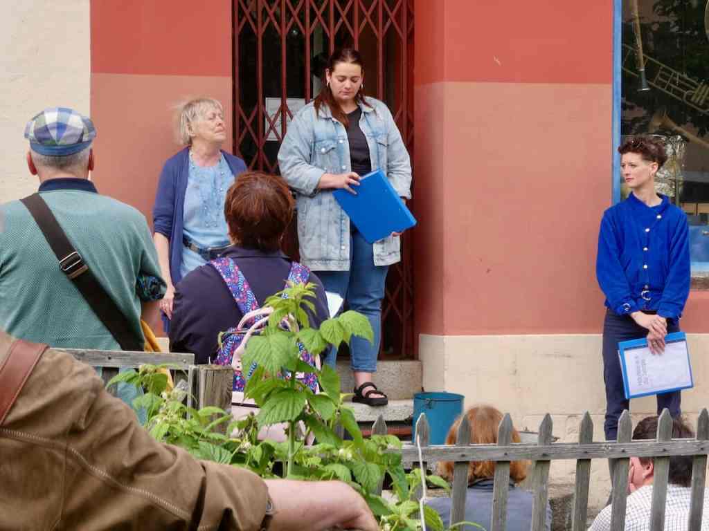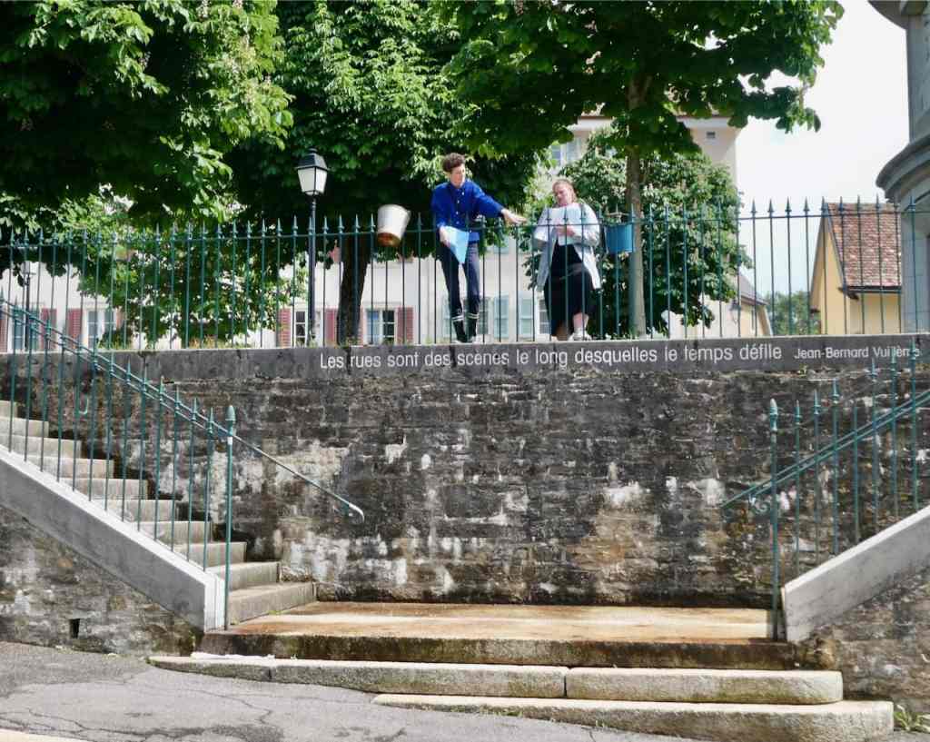 De la terrasse du café ABC à la terrasse entre le Café du Coin et la librairie de La Méridienne, ces deux heures de balade, au rythme de l’eau qui s’écoulait de vieux seaux percés et remplis à chaque fontaine, ont été fort appréciées par le public.