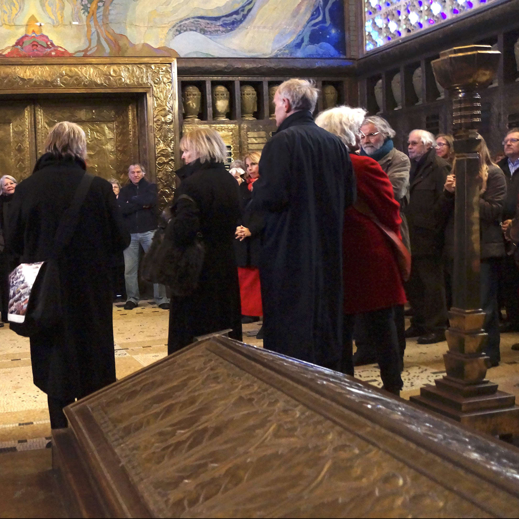 On finit au Crématoire, véritable manifeste de l’Art Sapin. Sa réalisation est le résultat d’une collaboration entre Charles L’Eplattenier et plusieurs élèves issus de son Cours supérieur de dessin, rassemblés sous le nom des Ateliers d’art réunis.
