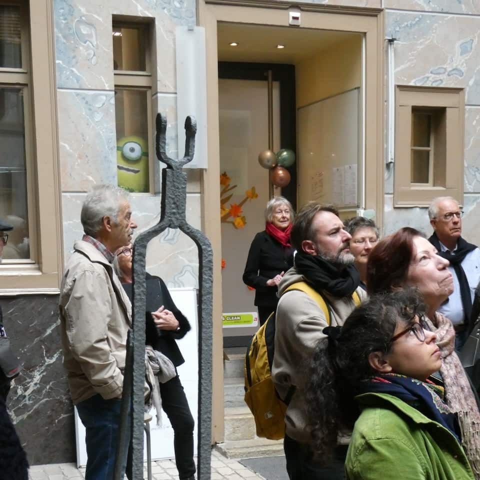 Un peu plus bas, on s’arrête devant une autre maison où Velan a également habité. De ses fenêtres il pouvait contempler la place des Victoires et son arbre de la Liberté, solidement enchaîné.